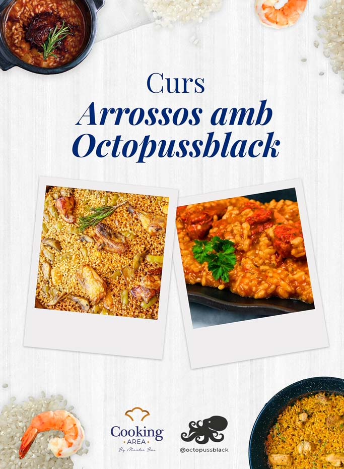 Octopussblack ve a Cooking Area a ensenyar-nos els seus secrets més preats per aconseguir l’arròs perfecte a través d’aquest magnífic curs de paella i arròs melós a Barcelona.