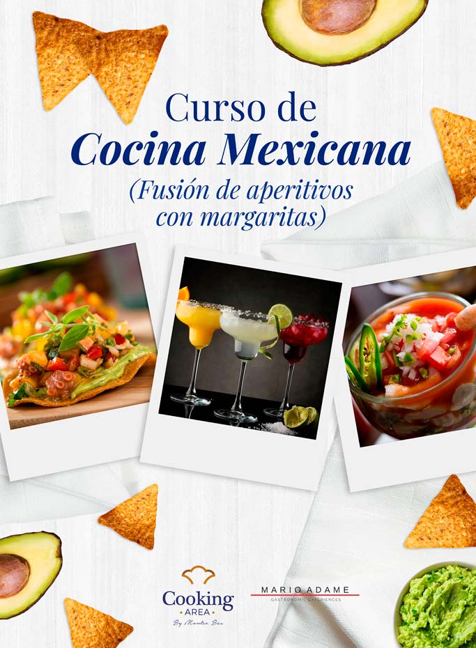 El chef Mario Adame nos va a enseñar las mejores recetas mexicanas que combinan aperitivos y margaritas gracias a este magnífico curso cocina Mexicana fusión en Barcelona.